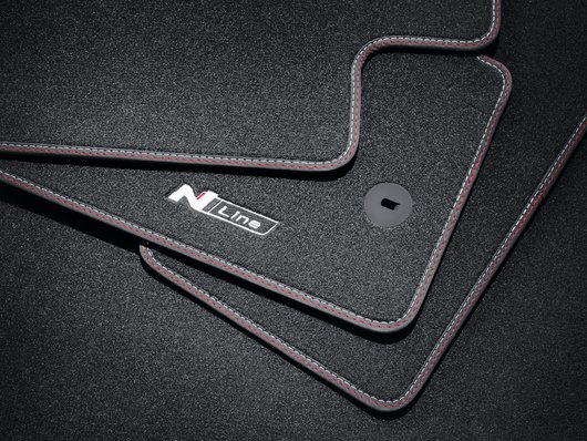 Додайте гарне, але міцне покриття для підлоги вашого автомобіля з високоякісного велюру. Зроблені на замовлення килимки мають логотип N Line у передньому ряду та фіксуються за допомогою точок кріплення та протиковзкої підкладки. Набір із 4 шт.